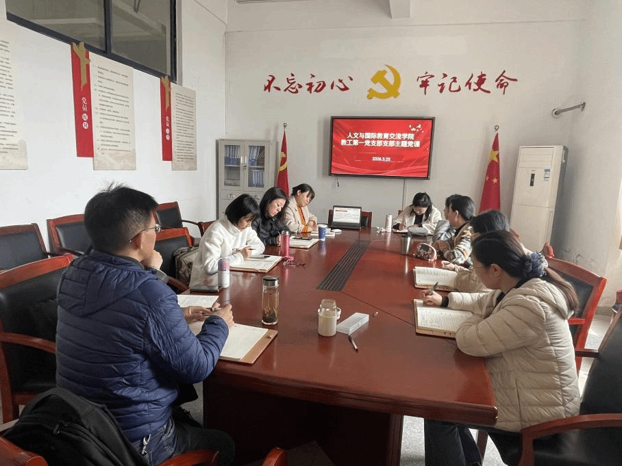 3月25日,人文与国际教育交流学院教工第一党支部书记程玲为支部党员讲授专题党课,宣讲全国两会精神及“十五五”规划相关内容。