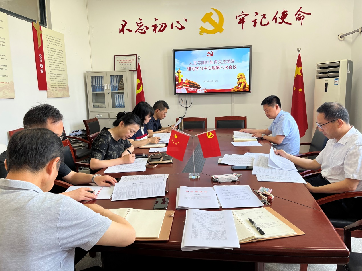 6月14日上午,人文与国际教育交流学院理论学习中心组召开2023年第六次会议,专题学习全面从严治党建设。会议由学院党总支副书记、院长周亚东主持,中心组全体成员、各党支部书记参会。