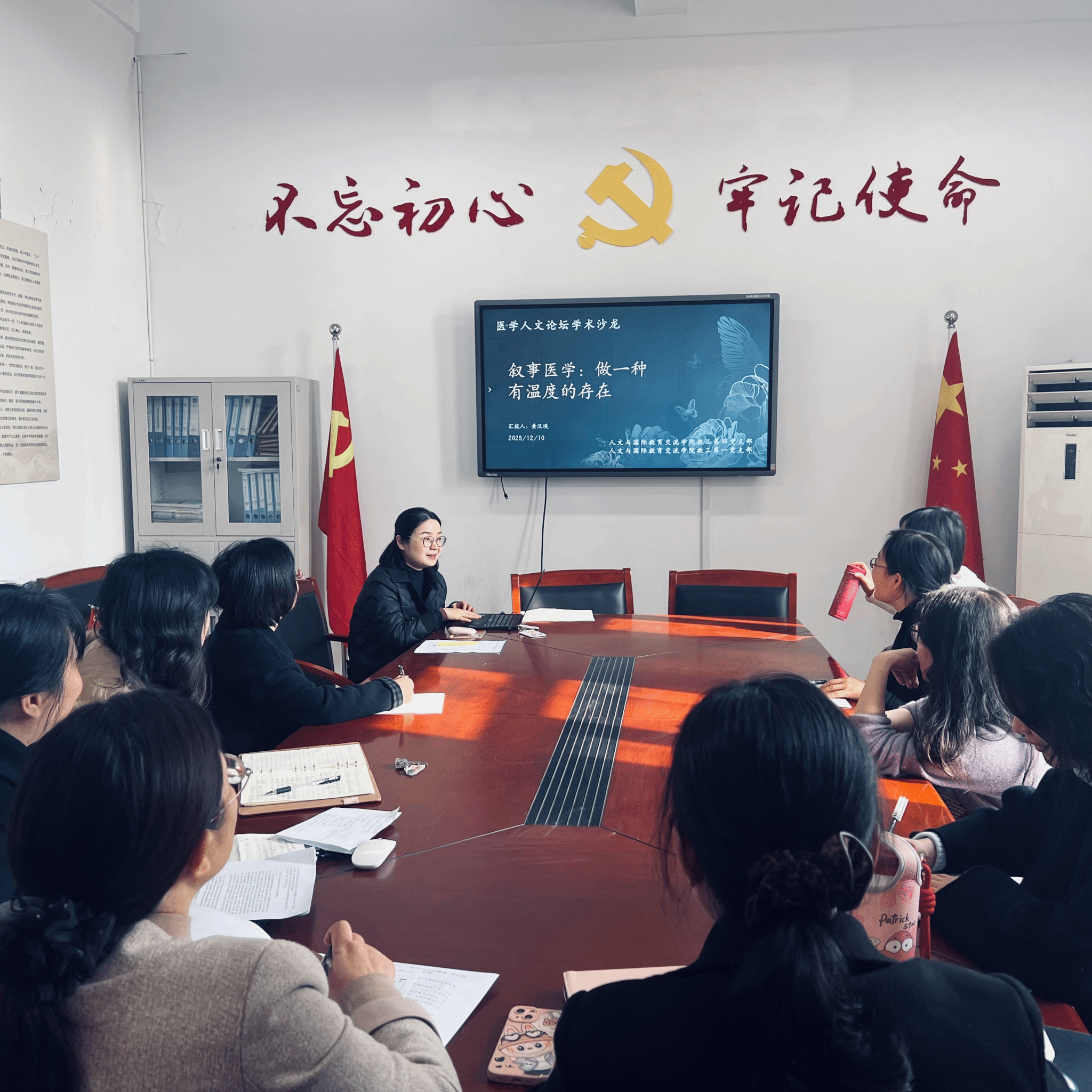 12月10日中午,人文与国际教育交流学院举办了医学人文论坛第91期学术沙龙。本次沙龙主题为《叙事医学:做一种有温度的存在》,学院相关外语教师积极参与,主讲人为中医药国际传播系教师黄汉瑛。