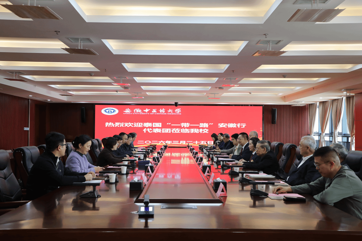 谢瑞瑾首先代表学校对代表团的来访表示热烈欢迎,并简要介绍了学校办学历史、学科特色、人才培养及在国际交流与合作方面取得的丰硕成果。他表示,安徽中医药大学作为安徽省中医药教育、科研和医疗的重要基地,始终秉承开放办学的理念,积极推动中医药走向世界。泰国代表团今天的来访,是深化中泰中医药务实合作的重要契机。希望未来双方以此次交流为起点,深化人才培养平台、加强临床医疗合作、推动科研创新攻关、促进中医药文化传播,推进中医药在泰国高质量发展,造福中泰两国民众,向世界展示中医药的独特魅力。